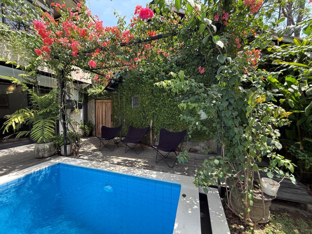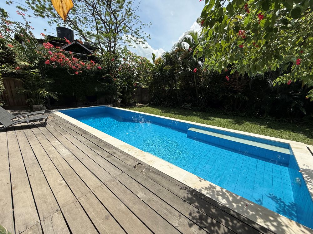 The garden oasis with 13 meter lap pool, provides a relaxing space to spend the days, set so centrally in Seminyak, the serenity is a gift. The empty land next door provides a sanctuary for birds, and a magnificent vista when enjoying the villa spaces.